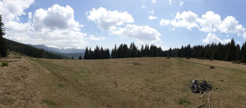 Da der Vortag noch in unseren Knochen steckt, beschließen wir für diesen tag, es etwas ruhiger anzugehen und suchen uns aus dem GPX -File eine kleinere Runde auf einen Berggipfel in der Nähe des Ortes aus. Den Beginn macht der Single Trail von der Seerunde, jedoch biegen wir nach der Abfahrt, die diesmal schon besser funktioniert nach rechts in Richtung Berge ab. Ute hat am Anfang leichte Unsicherheiten, meistert aber sowohl den Trail, die Abfahrt, wie auch die Flussdurchfahrt souverän. Die Auffahrt wurde von Sasha am Morgen als “it’s easy, a smooth gravel road” beschrieben, was sich doch als recht subjektive Darstellung erwies. Mit dieser Aufgabe kommen wir aber zurecht und biegen “nur” einmal falsch ab. Da dies scheinbar schon zu unserer Routine gehört, sind wir fast erleichtert, dass es sich nur um eine kurze Sackgasse handelt und wir unser Tagessoll bereits am Vormittag erfüllt haben. Der Umweg ist allerdings nur einige hundert Meter, somit bringt uns das nicht wirklich aus dem Plan. Zurück auf Kurs, erreichen wir recht zügig eine Lichtung, von der an einer Kreuzung 6 Wege weg führen. Der empfohlene, am Display markierte Weg führt einen ausgefahrenen, vom Wasser und anderen Urgewalten entstellten Steilhang nach oben. Wir beschließen, einen Plan B zu finden. Nach Studium der Karte und etwas Spazierengehen finden wir auch eine Möglichkeit und setzen unsere Fahrt nach oben fort. Der Weg ist in ähnlich guter Verfassung, jedoch weist er keine gefühlte 100% Steigung auf. Als wir aus dem Wald kommen, haben wir einige schöne, lange Wiesenauffahrten, die heraus- aber nicht überfordernd waren.